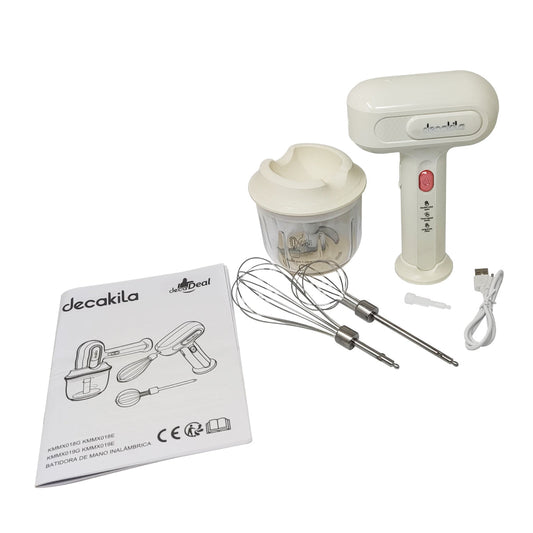 Batidora de Mano 3 Velocidades con Procesador Inalámbrica Blanca Decakila KMMX019E (Caja con 6 Piezas)